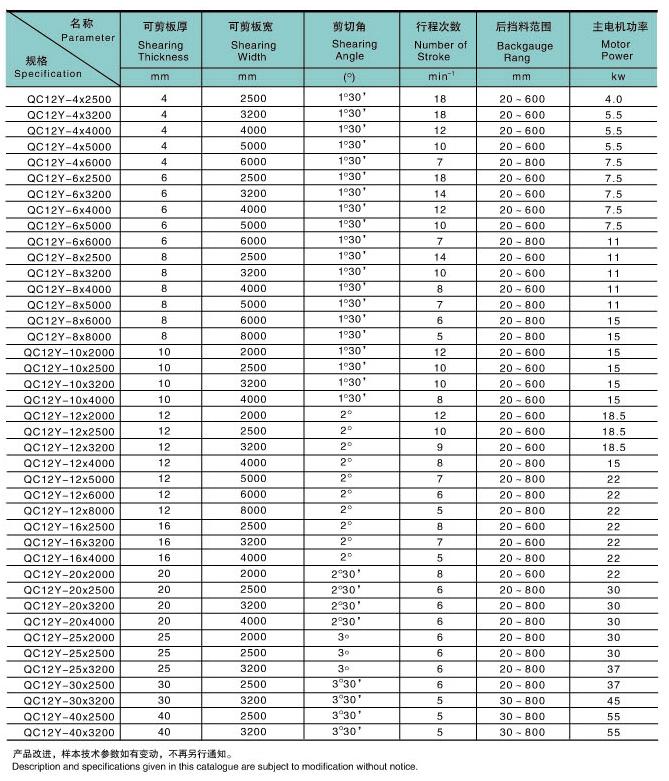 性能與特點(diǎn) : ? 采用鋼板焊接結(jié)構(gòu),液壓傳動,蓄能器回程,操作方便,性能可靠,外形美觀。 ? 刃口間隙調(diào)整有指示牌指示,調(diào)整輕便迅速 ? 設(shè)有燈光對線裝置,并能無級調(diào)節(jié)上刀架的行程量。 ? 工作區(qū)采用柵欄式人身安全保護(hù)裝置 ? 后擋料尺寸及剪切次數(shù)有數(shù)字顯示裝置。