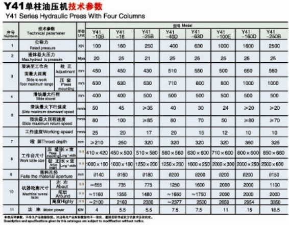 性能和特點: 該系列液壓機具有廣泛的通用性,適用于各種可塑性材料的壓力加工和成形,如不銹鋼板鋼板的擠壓、彎曲、這邊、拉伸及金屬零件的冷壓成形,同時亦可用于粉末制品、砂輪、膠木、樹脂熱固性制品的壓制。